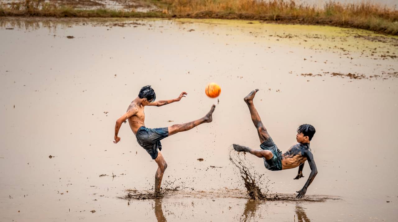 Hãy nhìn hai cậu nhóc kia – đá nước tung tóe lên trời, té nước vào nhau, chạy nhảy khắp nơi rồi ngồi bệt luôn xuống vũng nước… Trông thật hồn nhiên và rộn rã.