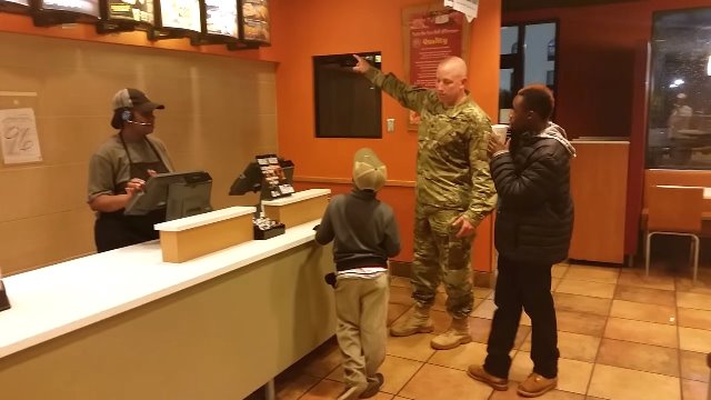 Một sĩ quan Mỹ đến dùng bữa tại một cửa hàng thức ăn nhanh, anh đã mua bữa tối cho hai đứa trẻ xa lạ bị đói. Hành động tốt bụng này đã khiến nhiều người cảm động.