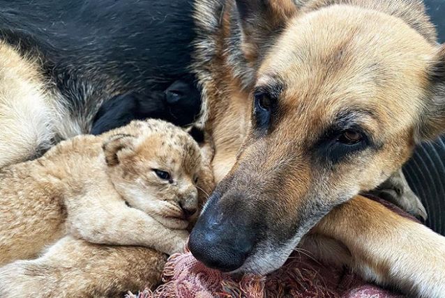 Một con sư tử cái tại một vườn thú ở Nga không biết cách chăm sóc 2 con sư tử con vừa chào đời và thậm chí còn tấn công chúng. May mắn thay, một con chó chăn cừu Đức đã “nhận làm mẹ kế”, thay sư tử cái chăm sóc sư tử con như con ruột.