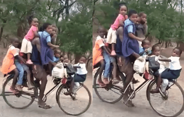 Một chiếc xe hơi 4 chỗ chỉ chở được 5 người, vậy mà người đàn ông ở châu Phi này lại chở đến 9 đứa trẻ trên một chiếc xe đạp… tạo nên một cảnh tượng hết sức thú vị.