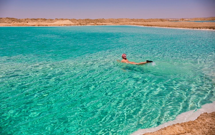 Hồ muối trong vắt ở ốc đảo Ai Cập, bạn có thể nổi trên mặt nước
