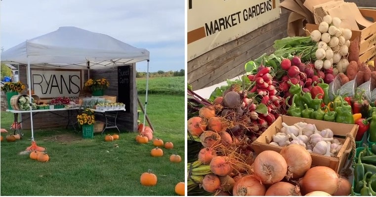Tại Ryan’s Market Gardens, chúng tôi trồng và bán các sản phẩm mới thu hoạch, không có hóa chất và có thể sản xuất tại địa phương. Chúng tôi bán các loại rau và hoa trong một gian hàng trong trang trại, cho các nhà hàng địa phương, và qua hình thức đăng ký giỏ rau hàng tuần.