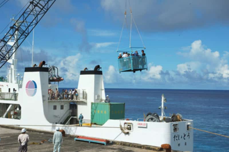 Trong đoạn clip được cư dân mạng quay lại, có thể thấy đảo Kitadaitōjima cũng sử dụng cần cẩu và loại lồng tương tự để vận chuyển du khách lên xuống tàu thuyền giống như đảo Minamidaitōjima.