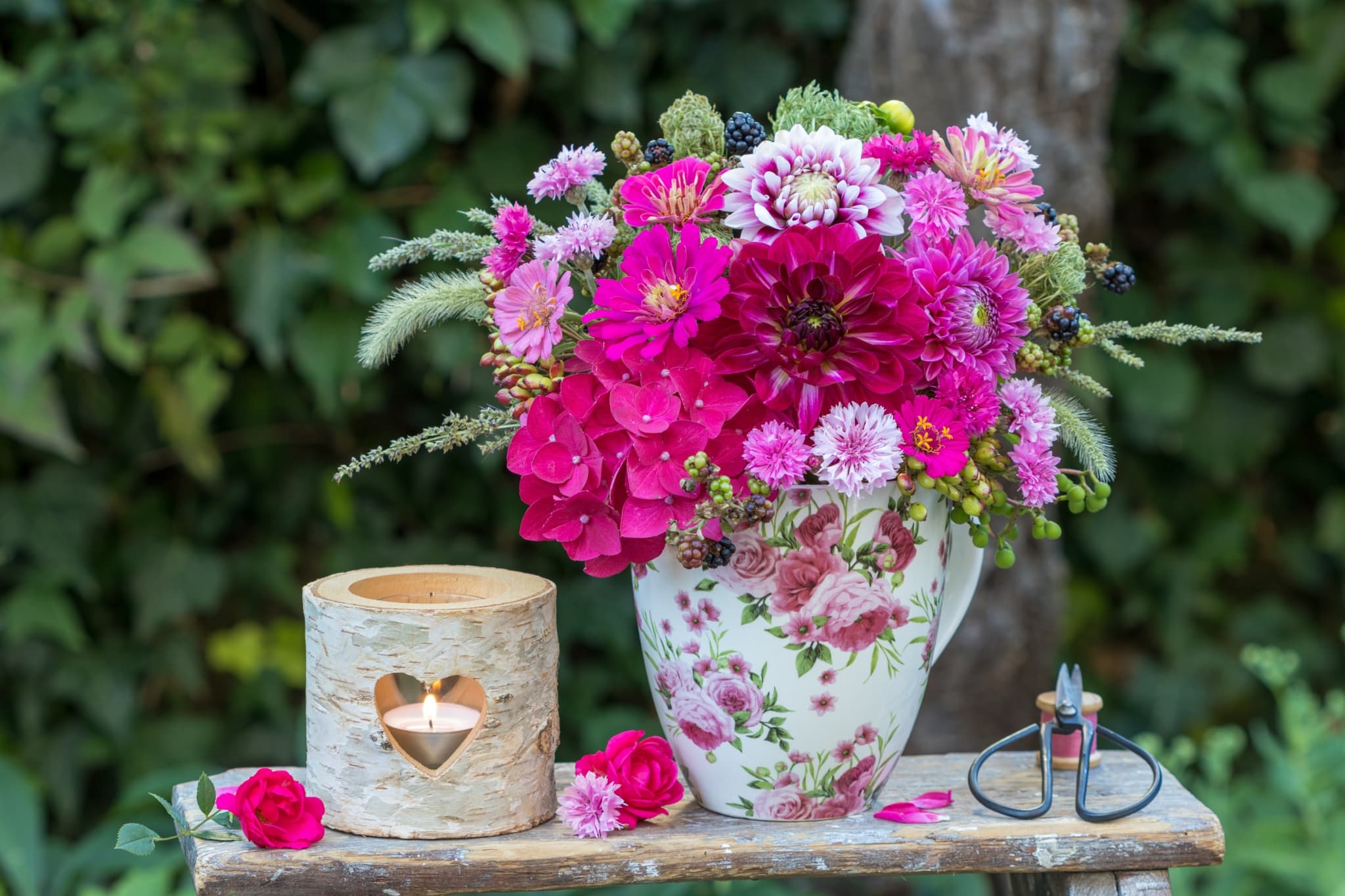 Từ hoa nghệ tây (crocus) nở rộ vào tháng Hai, đến hoa cúc (chrysanthemums) bung sắc vào tháng Mười Một, và các loài hoa mùa đông tiếp tục khoe màu trong tháng Mười Hai lẫn tháng Một, mỗi bình hoa ông cắm đều là món quà miễn phí mà thiên nhiên ban tặng.