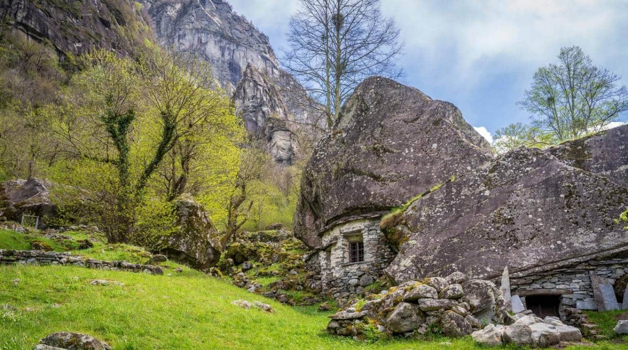 Không có bộ sạc iPhone nào cắm vào những bức tường đá, không có lò vi sóng hay công tắc đèn trong các ngôi làng nhỏ ở thung lũng Bavona. Đây là, và từ hàng thế kỷ nay vẫn là, một lối sống khắc nghiệt đối với những người sinh sống trong chuỗi ngôi nhà bị lãng quên này, thuộc vùng nói tiếng Ý ở miền nam dãy Alps của Thụy Sĩ. Tựa như những căn nhà của người hobbit bước ra từ sách của Tolkien hay một thị trấn cổ tích, những căn nhà như hang động nằm len lỏi dưới và giữa những khối đá khổng lồ. Khắp nơi là tàn tích còn sót lại của những trận lở đá long trời.