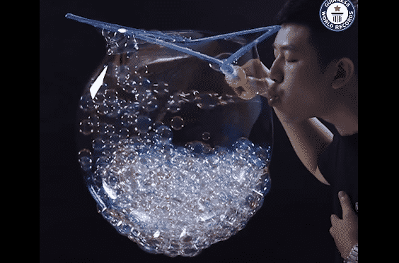 Theo thông tin trên trang web của tổ chức Kỷ lục Guinness Thế giới, anh Trương Dục Đức người Đài Loan đã thổi được 783 chiếc bong bóng xà phòng nhỏ bên trong một bong bóng rất lớn vào ngày 20/9/2020, phá vỡ kỷ lục 779 bong bóng nhỏ trước đó được một người Đài Loan khác xác lập vào năm 2015.