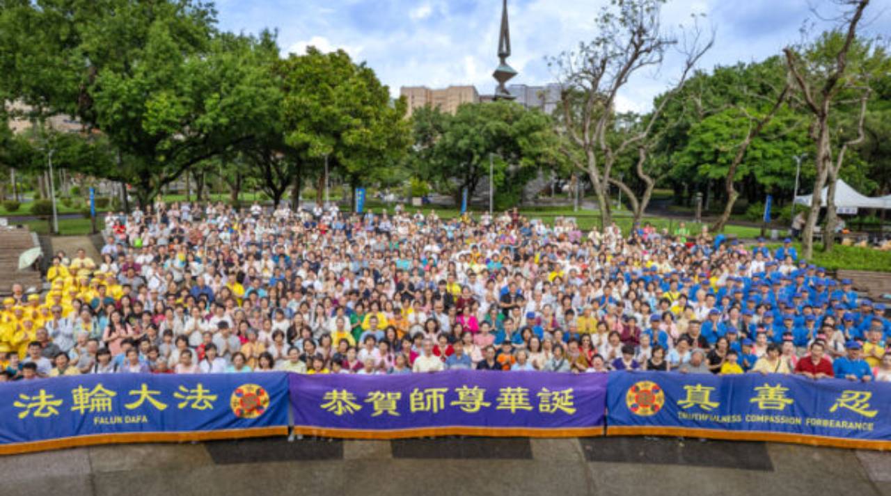 Ngày 10 tháng 5, gần 600 học viên Pháp Luân Công tại khu vực Đại Bắc đã tổ chức lễ kỷ niệm Ngày Pháp Luân Đại Pháp Thế giới tại Đài Bắc. Họ chắp tay trang nghiêm đồng thanh nói: “Cung chúc Sư tôn sinh nhật vui vẻ!”