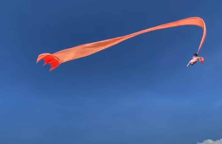 Quả là một khoảnh khắc đáng sợ và hồi hộp cho những ai chứng kiến, vốn đều đang ngóng lên trời để theo dõi con diều dài màu cam tráng lệ.