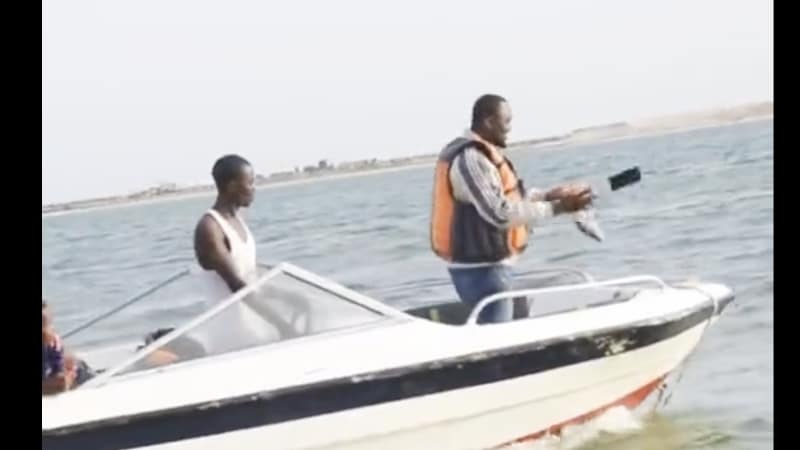 Selfie với cá rồi quăng điện thoại. (Ảnh chụp màn hình video)
