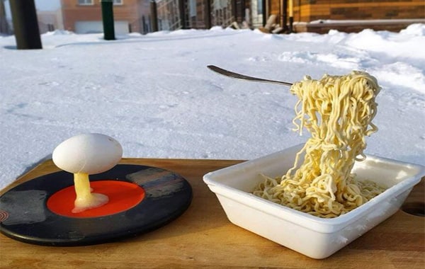 Mì và trứng lơ lửng trong băng giá -45 độ ở Siberia