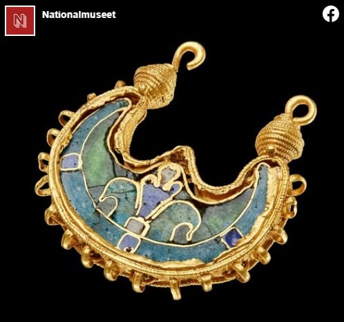 Một chiếc khuyên tai bằng vàng hình nửa vầng trăng độc đáo được khai quật ở Jutland, Đan Mạch gần đây. Các chuyên gia cho rằng chiếc khuyên tai quý hiếm này có thể là món quà của hoàng đế Byzantine tặng cho một chiến binh Viking cách đây 1.000 năm. Những đồ trang trí bằng vàng độc đáo như vậy chưa từng được khai quật ở các nước Bắc Âu trước đây.