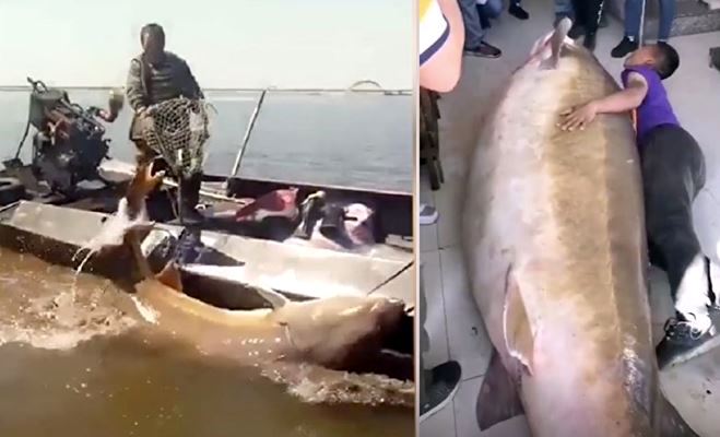 Vào ngày 19/5 vừa qua, ông Mã – ngư dân ở Phủ Viễn thuộc tỉnh Hắc Long Giang cùng hai ngư dân khác đã đối đầu với một con cá khổng lồ, ba người cùng hợp sức cuối cùng đã bắt được con cá to lớn này. Nhờ sự giúp sức của hơn 10 người, các ngư dân mới đưa được nó lên bờ.