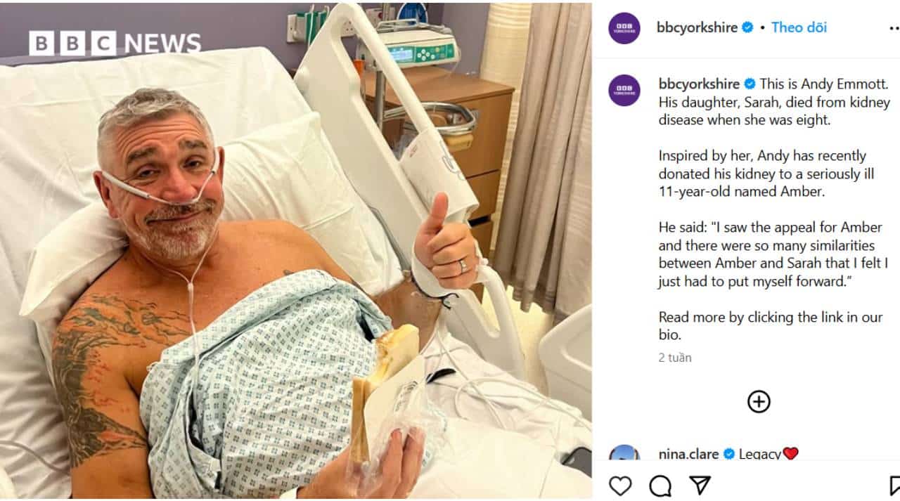 Khi thấy một bé gái 11 tuổi cần ghép thận để sống sót, Andy Emmott đã (55 tuổi, đến từ Yorkshire) “không chút do dự” mà trao tặng cho cô một bên thận của mình. Tại sao anh lại hào phóng với một người lạ như vậy?