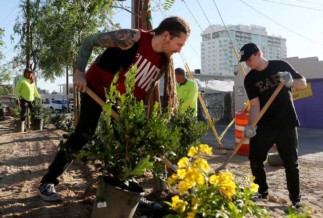 Vào 8:30 sáng thứ 5 ngày 5/10, một số sinh viên của trường UNLV (University of Nevada, ở Las Vegas) đã tụ lại với nhau ở một góc của Casino Center và đường Chaleston (quận Arts), dùng cuốc chim và xẻng để đào hố trồng hoa thủy tiên vàng.