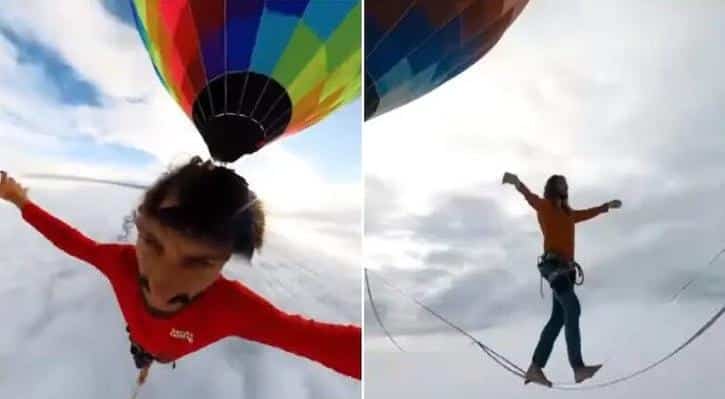 Người đàn ông đi bộ trên dây giữa 2 khinh khí cầu, lập kỷ lục Guinness