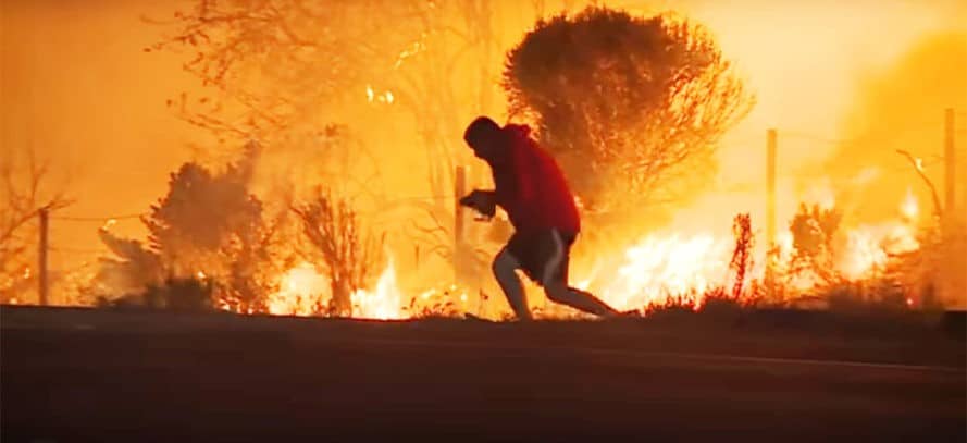 Đài KABC địa phương đưa tin, một nhiếp ảnh gia đã quay lại được cảnh tượng này. Khi đó, người đàn ông rất luống cuống nhưng anh đã tiến lại gần tiếp cận một con thỏ lúc nó đang nhảy gần ngọn lửa. Anh cố gắng xoay sở để túm được con vật và ôm nó trong tay chạy thoát ra khỏi ngọn lửa khi đám cháy đang hung dữ thiêu rụi mọi thứ xung quanh.
