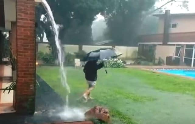 The tờ The Sun, sự việc xảy ra ở Posadas thuộc vùng Đông Bắc tỉnh Misiones (Argentina), một cậu bé 12 tuổi đang cầm dù nghịch nước khi trời mưa vào ngày 22/10, cô Carolina Kotur – mẹ của cậu bé đang đứng bên cạnh quay phim. Có thể thấy chân cậu bé đang mang dép, trên người mặc áo mưa và cầm một cây dù vui vẻ nghịch nước dưới mái hiên.
