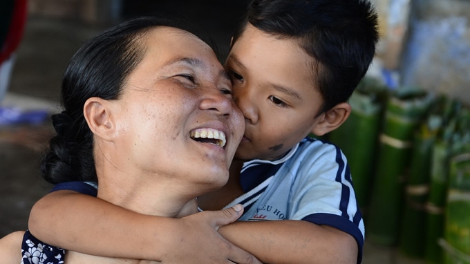 Trên đường về nhà, cậu bé cảm kích ôm lấy mẹ: “Mẹ ơi, cảm ơn mẹ đã cho con sức mạnh ạ.”