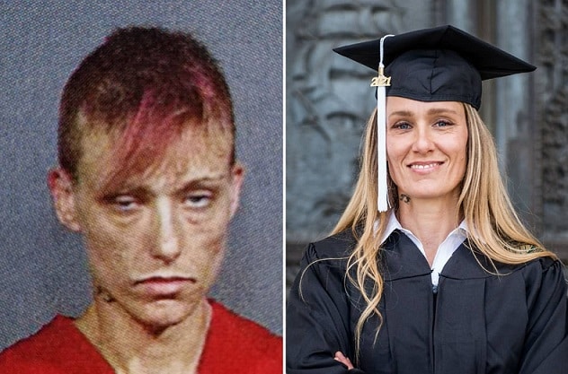 Mới đây, cô Burton vừa tốt nghiệp đại học khi đã 48 tuổi. Vào tháng trước, cô đã chia sẻ hai bức ảnh một là khi cô mặc lễ phục tốt nghiệp và một là khi cô còn là con nghiện trước đây, quả thật như hai người khác nhau.