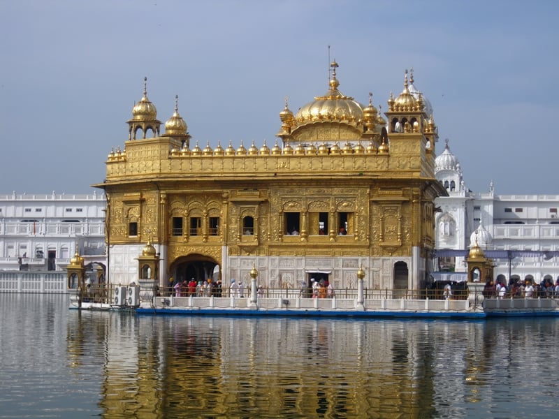 Nhà ăn mang dáng vẻ nguy nga lộng lẫy này thực ra là một ngôi đền của Sikh giáo, tọa lạc trên một cái hồ, là thánh địa thiêng liêng của Sikh giáo ở Ấn Độ, ngôi đền này có tên Golden Temple. Nó có kiến trúc vô cùng độc đáo, đó chính là trên những bức tường bên ngoài đền hầu như đều được dát vàng, nhìn từ phía xa trông giống như là đang có một cái đền vàng đang nổi trên mặt nước vậy, đặc biệt là khi ánh hoàng hôn dần buông xuống, cộng thêm những con sóng lăn tăn phản chiếu hình ảnh ngược của ngôi đền, tạo nên khung cảnh rất huyền ảo.