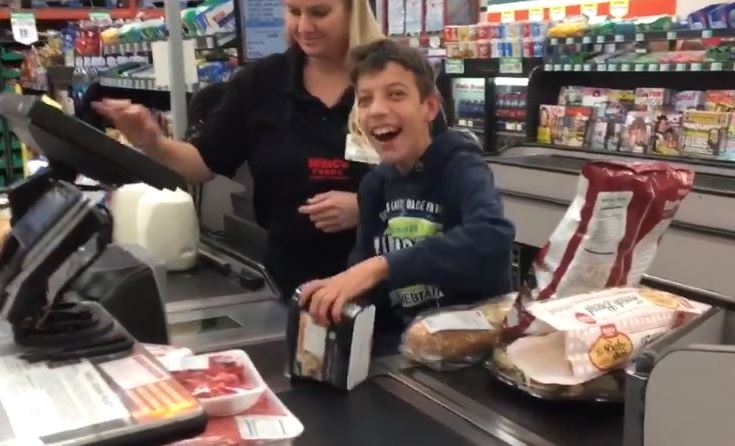 Nhân viên thu ngân ở Mỹ khiến cậu bé bại não cười hạnh phúc