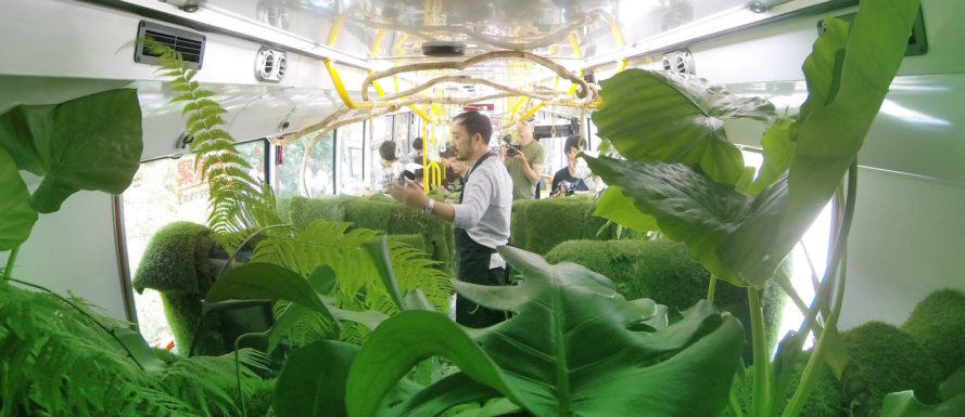 Được trang trí bằng rong rêu, hoa lan, hoa lily và dương xỉ, chuyến xe buýt ‘rừng xanh’ thân thiện với thiên nhiên này đưa hành khách đến một thế giới mới lạ.