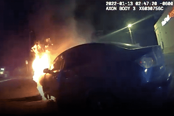 Video được ghi lại bởi máy quay trên đồng phục của Bianca cho thấy cô đến nơi vào lúc tờ mờ sáng thì nhìn thấy phần đầu của chiếc ô tô đã bốc cháy, khói bốc lên dày đặc.