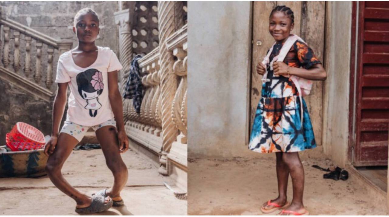 Đôi chân cong 90 độ khiến mỗi bước đi của Fudia đều vô cùng đau đớn. Nhờ ca phẫu thuật miễn phí của Mercy Ships mà cuộc đời cô bé đã bước sang trang mới.