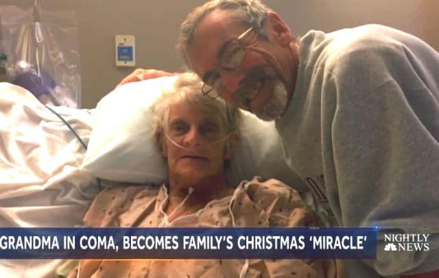 Một cụ bà ở Mỹ hôn mê đã nhiều tuần do bệnh nặng và cần phải dựa vào máy móc để duy trì sự sống. Khi gia đình đưa cụ về nhà chăm sóc trước khi qua đời, đồng thời chuẩn bị hậu sự thì cụ tỉnh và khỏe lại như một kỳ tích trong tình trạng không ăn uống gì suốt 12 ngày. Sau đó, cụ có thể ăn mừng Giáng Sinh cùng gia đình, điều này khiến các bác sĩ cảm thấy rất kinh ngạc.