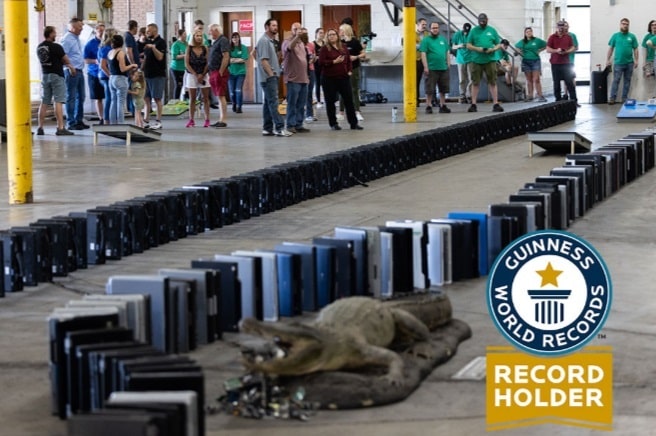 Một công ty tái chế máy tính và linh kiện điện tử ở Indiana, Hoa Kỳ đã phá kỷ lục Guinness thế giới bằng cách sắp xếp 2.910 máy tính xách tay thành các quân cờ domino và xô đổ chúng. Hoạt động này được thực hiện với mục đích nhấn mạnh tầm quan trọng của việc tái chế đồ điện tử.