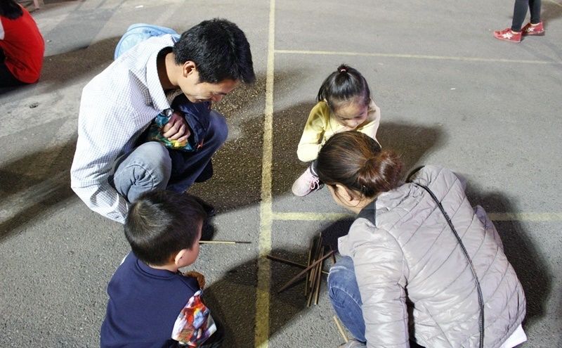 Trò chơi dân gian “ô ăn quan” truyền thống hấp dẫn mọi lứa tuổi.