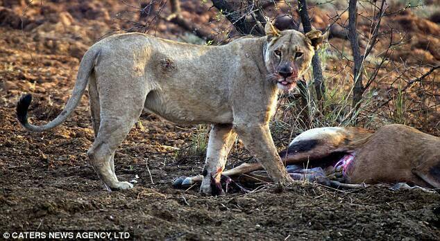 Theo tờ Daily Mail đưa tin, nhà thám hiểm động vật hoang dã Gerry Van Der Walt cùng một nhóm người tìm đến Madikwe Game Reserve, đây là một trong những khu bảo tồn động vật hoang dã lớn nhất Nam Phi. Trong chuyến đi này, họ đã bất ngờ chạm trán một con sư tử cái đang ăn thịt linh dương.