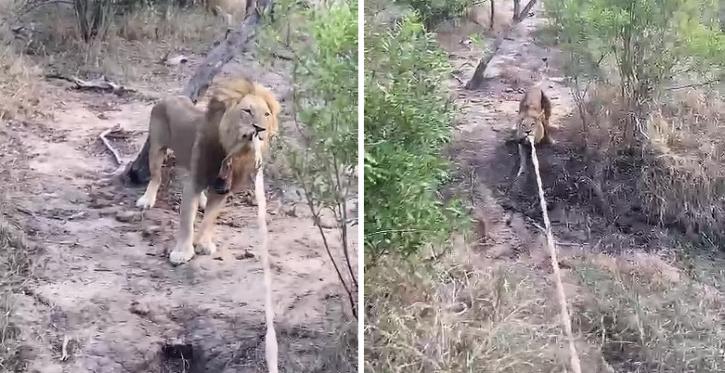 Anh Jabulani cho biết: “Sợi dây thừng đã thu hút sự chú ý của con sư tử trước khi tôi kịp thu dây lại. Nó đi qua đi lại rồi ngoạm lấy đầu kia của sợi dây.”