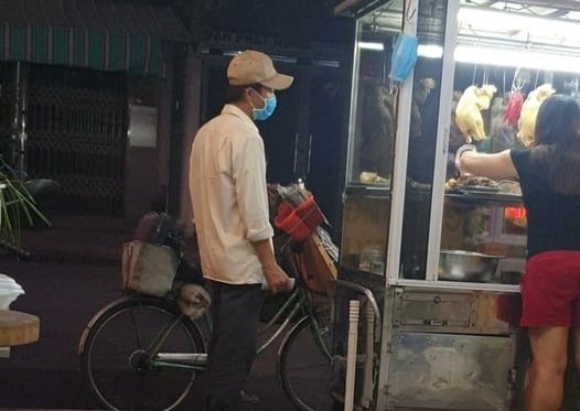 Người bán hàng rong bên quầy cơm trong đêm tối... (Ảnh: Phạm Quý Nhân/Facebook)