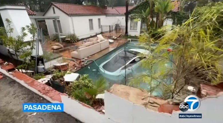 Lái xe trong điều kiện thời tiết cực đoan vô cùng nguy hiểm. Giữa những cơn mưa xối xả và gió mạnh ập đến Nam California, một tài xế lái Tesla đã tạo ra một sự cố vô cùng hy hữu. Người này đã phóng xe đâm thẳng vào một hồ bơi ở Pasadena.
