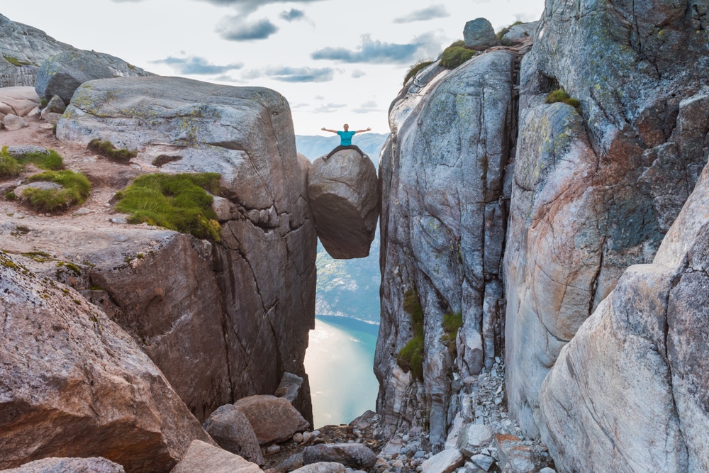 Tại quận Rogaland phía tây nam Na Uy, có một “tảng đá kỳ lạ” bị kẹp chặt giữa hai mặt vách đá, nằm ở độ cao gần 1.000m so với mực nước biển, mà phía bên dưới đều là vực thẳm vô cùng choáng ngợp. Tảng đá là một điểm du lịch cực kỳ nổi tiếng, thu hút đông đảo khách du lịch từ khắp nơi trên thế giới.