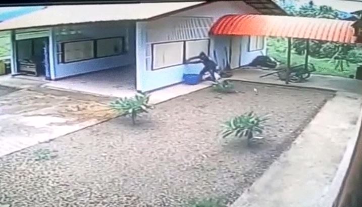 Đoạn video được ghi lại bằng camera an ninh cho thấy một người mặc đồ đen đã cố gắng đột nhập vào một ngôi nhà, người này ra sức phá cửa sổ rồi leo vào trong.