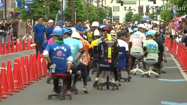 Mới đây, Nhật Bản đã tổ chức cuộc thi “đua ghế văn phòng” mỗi năm một lần tại thành phố Kyoto, các đội tham dự ngồi trên ghế và trượt ghế trên đường đua xem đội nào có thể trượt được nhiều vòng nhất trong khoảng thời gian quy định. Không khí cuộc thi diễn ra vô cùng sôi động và thú vị.