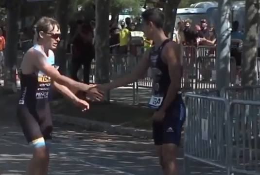 Spaniard triathlete, Diego Méntrida let his rival pass when he made a mistake before the finish line. They were fighting for the ? in the Santander Triathlon.