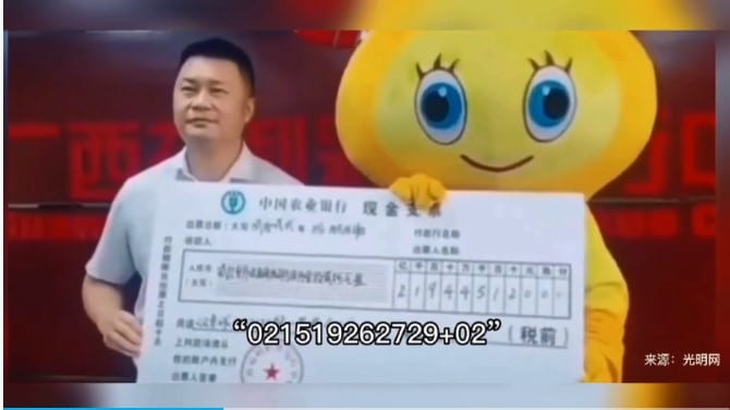 Theo tờ báo địa phương Nanning Evening News, vào ngày 24/10, ông Li (đến từ miền nam Trung Quốc) đã thắng giải độc đắc xổ số trị giá 219 triệu Nhân dân tệ (29,9 triệu USD). Khi đến nhận tiền thưởng ở văn phòng xổ số ở Nam Ninh, thuộc khu vực phía nam của Quảng Tây, ông đã đeo mặt nạ để che giấu danh tính.