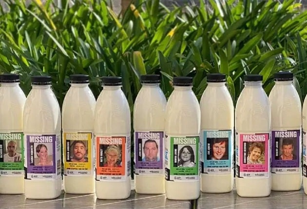 Kể từ ngày 15/6, các siêu thị ở Úc đã bày bán những chai sữa có in hình ảnh người bị mất tích nhằm khiến ai từng gặp những người này nhớ lại và cung cấp thông tin về họ để họ được đoàn tụ với gia đình.
