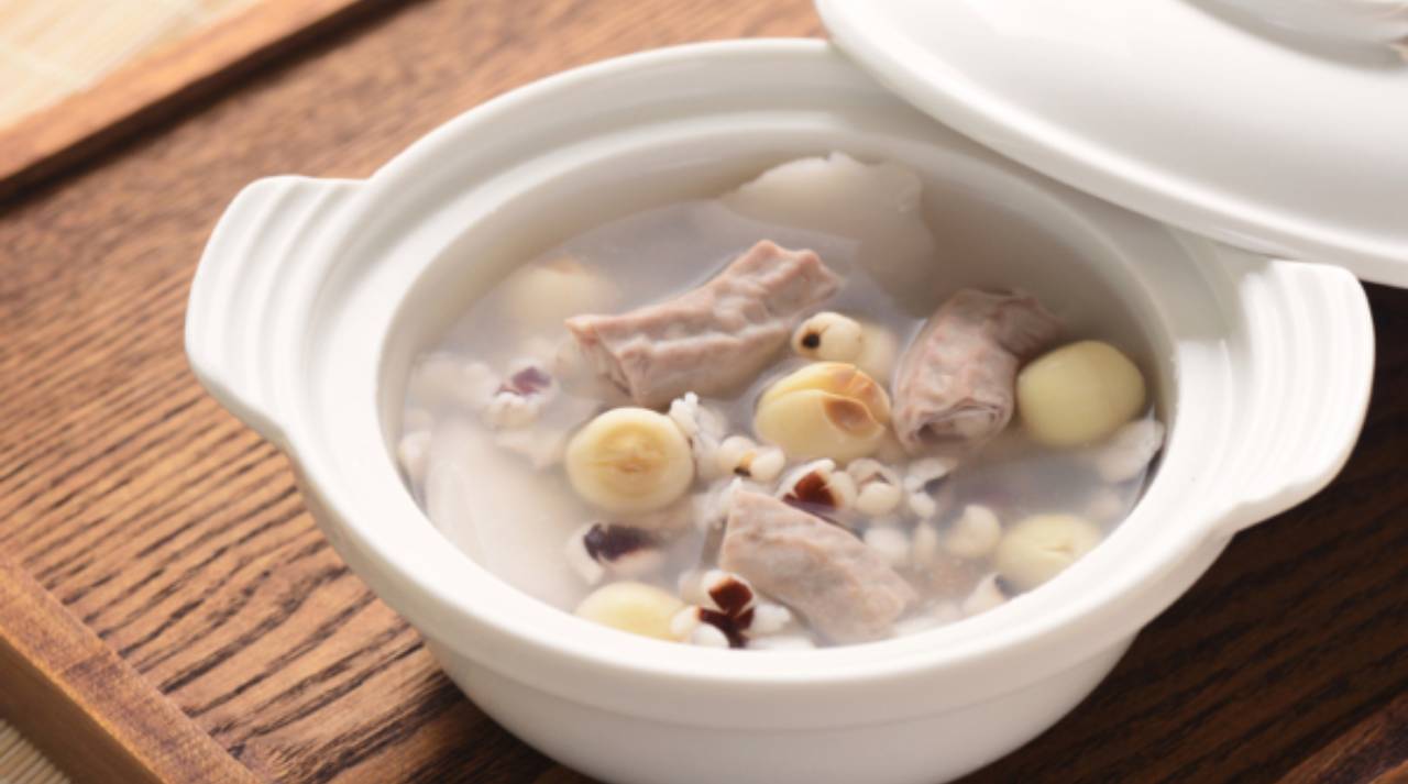 Thành phần: 60g Khiếm thực, 30g Hoài sơn, 60g hạt sen, 25g Phục linh, 30g Hạt Ý dĩ, 1500ml nước
