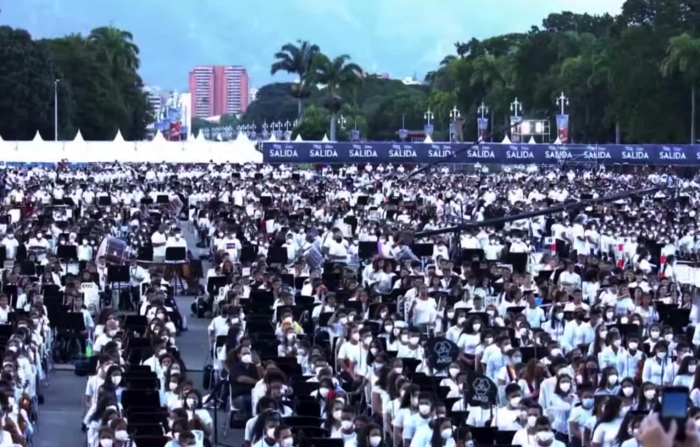 Một tuần trước, hơn 12.000 nhạc sĩ – hầu hết là trẻ em và thanh thiếu niên – từ Hệ thống dàn nhạc thanh thiếu niên và nhi đồng quốc gia của Venezuela (còn được gọi là “El Sistema”) đã chơi một bản nhạc cổ điển cùng nhau trong hơn 5 phút khi họ tìm cách đánh bại kỷ lục của Nga được thiết lập cách đây 2 năm, theo trtworld.com.