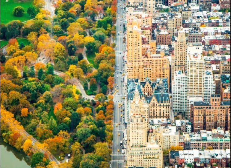 Đây là bức ảnh phản ánh rất rõ vấn đề được đăng tải trên tờ Tạp chí Địa lý Quốc gia không lâu trước đây đã làm nhóm bằng hữu của chúng tôi “nổ tung” lên. Trên mảnh đất vàng Manhattan mà vẫn còn có thể giữ được 30% công viên thành phố, về cơ bản đây chính là sự bảo vệ môi trường của người Mỹ.