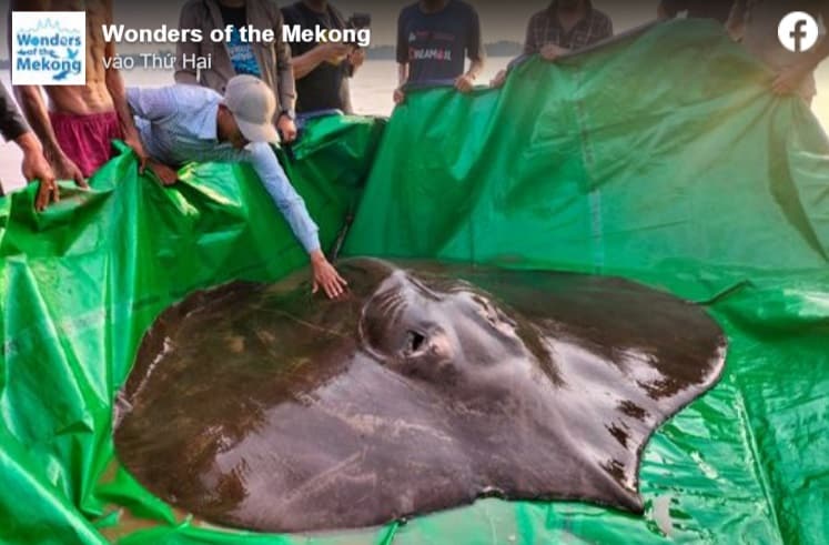 Người dân Campuchia trên sông Mekong bắt được một con cá đuối (Stingray) nặng khoảng 300kg, phải đến hơn chục người chung sức mới có thể kéo con cá lớn vào bờ. Các nhà nghiên cứu cho biết việc thả con cá đuối có nguy cơ tuyệt chủng này là một tin lớn ở Campuchia và trên toàn cầu.