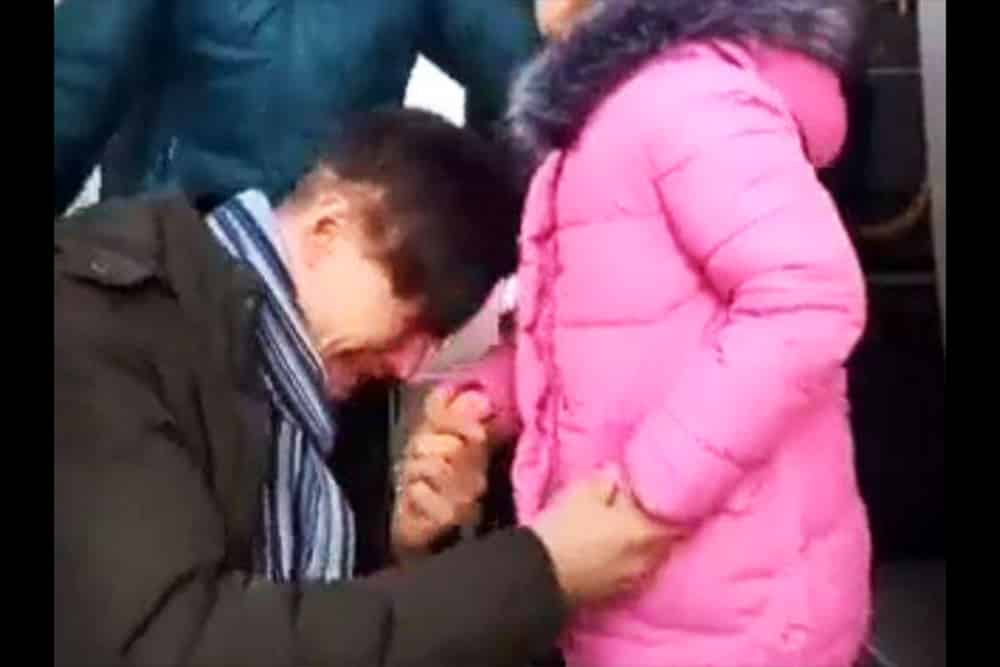 Theo đoạn video trên Twitter, một người cha Ukraine đã đưa cả gia đình lên xe, chuẩn bị sơ tán đến khu vực an toàn, nhưng anh vẫn ở lại. Khi dắt con gái nhỏ lên xe, người cha quỳ một gối xuống, dặn dò xong anh ôm con gái vào lòng và khóc thành tiếng, cô bé cũng òa khóc nức nở.