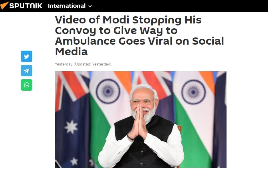 Thủ tướng Ấn Độ Narendra Modi đã ra lệnh dừng đoàn xe hộ tống để nhường đường cho một xe cấp cứu đi phía sau vượt lên trước. Hành động này đã nhận được nhiều lời khen từ phía cư dân mạng.
