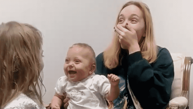 Đoạn video cho thấy chị gái của bé Scarlet liên tục gọi “em gái à, em gái à…” để xem Scarlet có phản ứng với giọng nói của mình không. Khi bé Scarlet bắt đầu cười, mẹ của cô bé cũng cười theo trong những giọt nước mắt hạnh phúc.