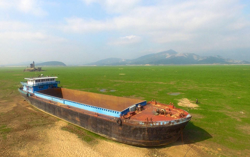 Sau đây là một số hình ảnh về tình trạng hạn hán nghiêm trọng tại hồ nước ngọt lớn nhất Trung Quốc này: