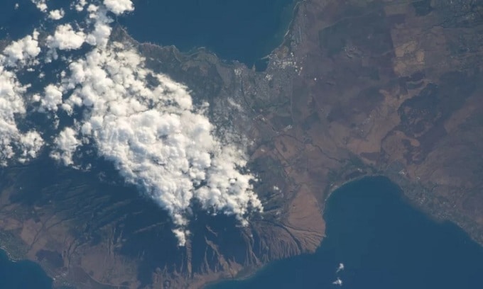 Ảnh vệ tinh do Trạm Vũ trụ Quốc tế (ISS) chụp hôm 12/8 ghi hình đảo Maui của Hawaii 4 ngày sau khi cháy rừng bùng lên trên đảo, theo tờ Space.